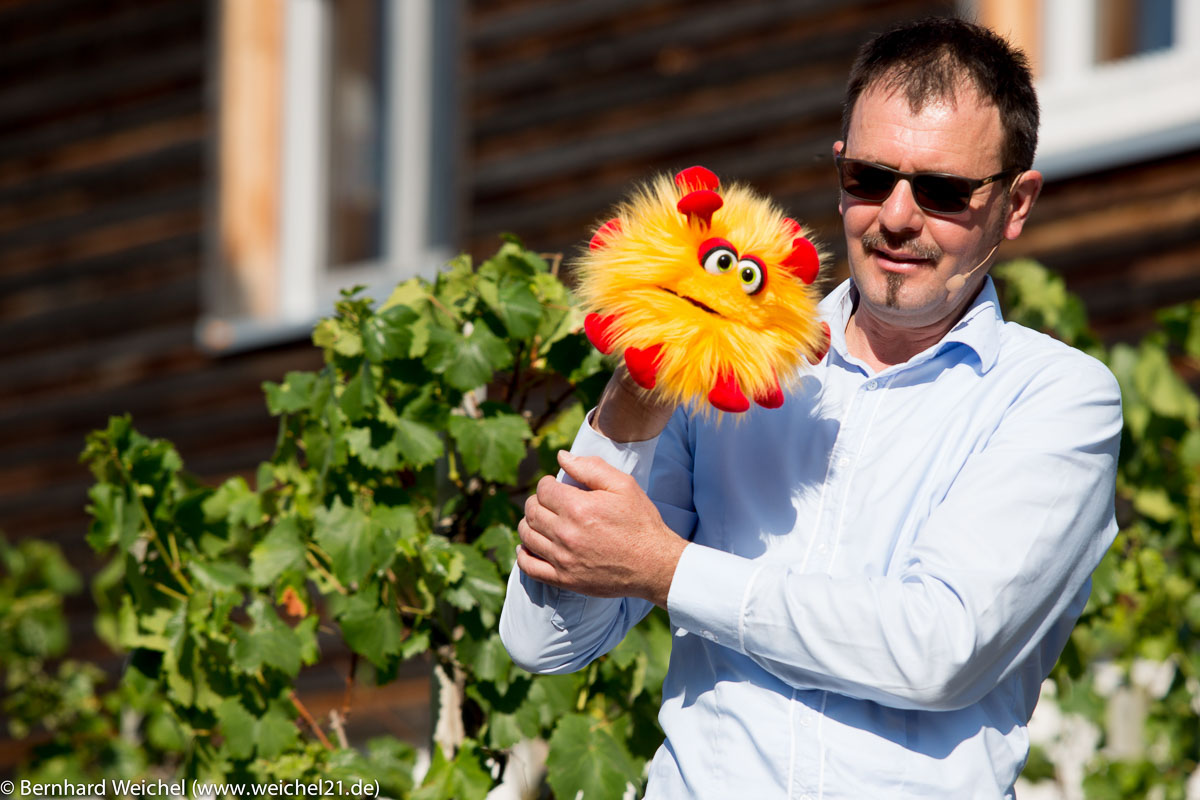 Bei herrlichem Wetter hatten wir viel Freude an der Gemeinschaft, an der Handpuppe Charly und seiner neuen Freundin Coronie, toller Musik und einer eindrucksvollen Szenenpredigt von Reinhold Frasch über die Speisung der 5000 und was wir daraus lernen können. Sich aufmachen und zu Jesus bringen was wir haben - er macht Großes daraus. Das war die Botschaft für uns heute. Die Szenen der Predigt spielten unsere neue Kinderreferentin Alexandra Waldmann und Hartmut Schühle.